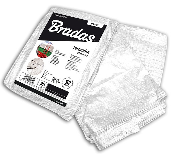 Abdeckplane zur Baustellenabdeckung, für Dachsanierungen, zum Abdecken von Baumaschinen, Materialien, Werkzeugen und verschiedensten Produkten. Die Gewebeplane ist rundum doppelt randverstärkt und mit Aluminiumösen zur Befestigung versehen. Die Lebensdauer der Abdeckplane mit einem Gewicht von 90 g/m² ist etwa doppelt so hoch wie bei den leichtesten handelsüblichen Produkten. Bei dem Gewicht von 120 g/m² ist die Lebensdauer sogar dreimal höher.