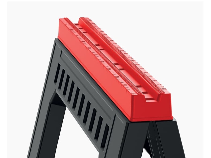 Der Arbeitsbock ist aus robustem Kunststoff (ABS) gebaut, der mit Glasfasern ausgefüllt ist. Das verwendete Material sorgt für höhere Beständigkeit gegen mechanische Beschädigung.