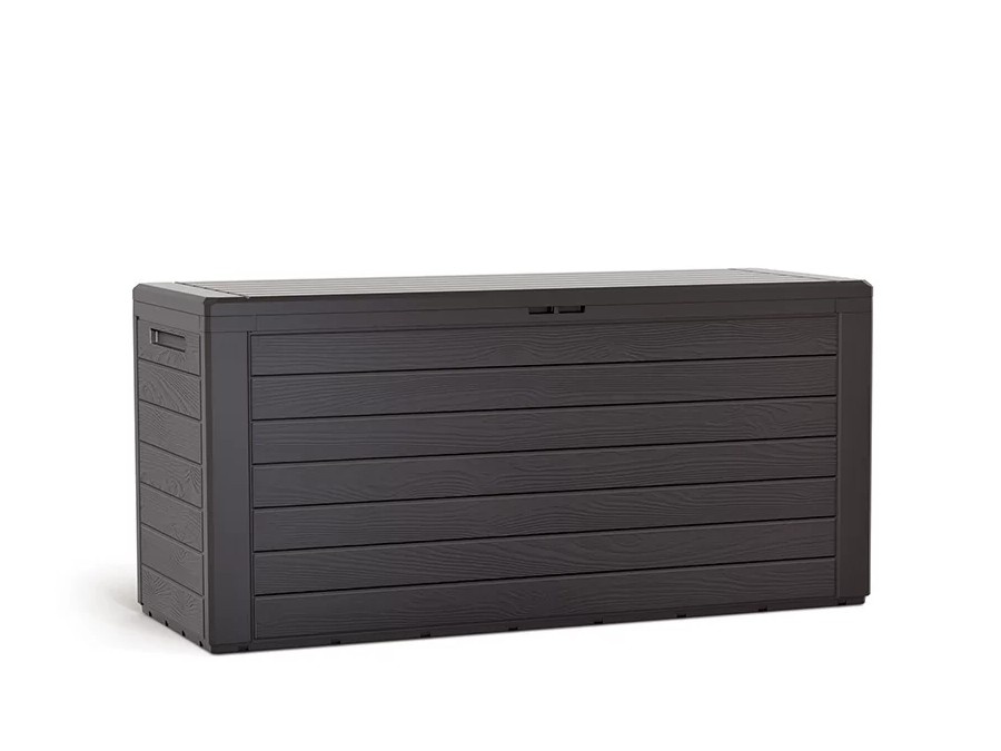 Die Aufbewahrungsbox überzeugt nicht nur durch ihre Funktion, sondern auch durch ihre dekorative Optik. Die Staubox in Dekor Holzimitation wirkt im Garten unauffällig und stört nicht den ästhetischen Eindruck Ihrer Außenräume.