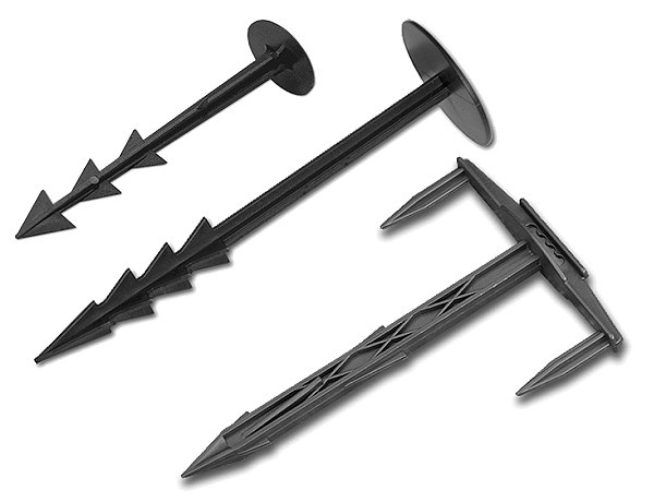 Die Kunststoffanker werden mit Widerhaken ausgeführt, damit sie im Boden besser halten. Zur Verankerung von Textilien oder Erosionsschut­znetzen an einem steileren Hang eignen sich z.B. Erdnägel aus Stahl Geopin Steel.