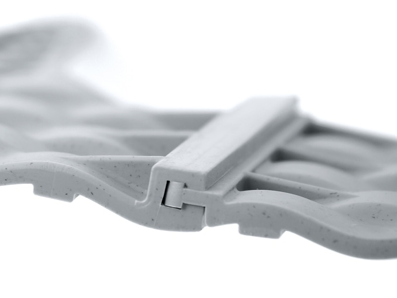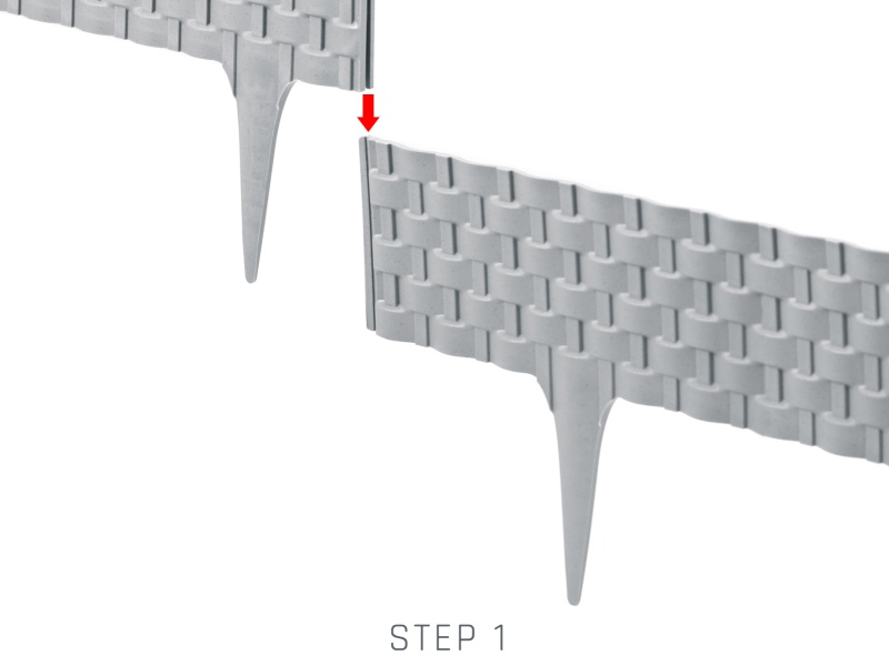 2. Zum Anschließen des nächsten Teils dienen integrierte Einrastelemente an Palisadenenden. Einfach zusammenklicken und beliebig lange Rasenkanten bilden.