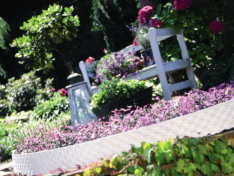 Gartenpalisaden als Rasenkanten mit Dekor von verflochtenen Rattanstreifen sind vom Naturrattan fast kaum zu unterscheiden. Sie lassen sich leicht mit anderen Dekorzäunen kombinierten, ohne das ästhetische Gesamtbild Ihres Gartens zu stören.