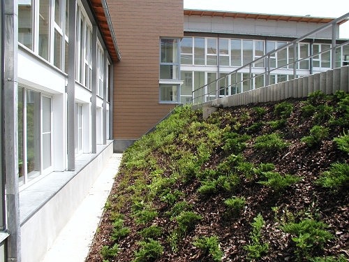 Die Erosionsschutzmatte aus Kunststoff dient als permanente Böschungssicherung gegen Bodenerosion. Es handelt sich um den sog. unterirdischen Schutz – nach dem Einbau ist sie nicht sichtbar und beeinträchtigt somit keineswegs das Erscheinungsbild der Böschung.