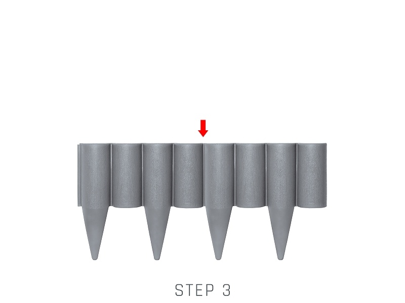 Dann nur das nächste Element der Kunststoffpalisade mittels des integrierten Klicksystems einstecken. Durch diese Verbindungsweise können Sie einen beliebig langen Einfassungsstreifen herstellen.