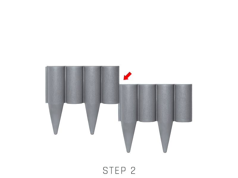 Dann nur das nächste Element der Kunststoffpalisade mittels des integrierten Klicksystems einstecken. Durch diese Verbindungsweise können Sie einen beliebig langen Einfassungsstreifen herstellen.