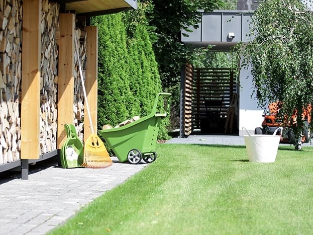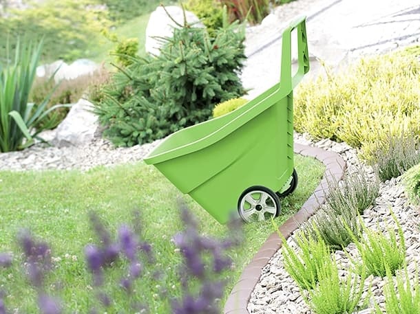 Gartenwerkzeug, Falllaub oder Kompost zu transportieren kann mühsam sein. Jedoch mit dem Gartentrolley können Materialien in einem Bruchteil der Zeit mengenweise befördert werden.