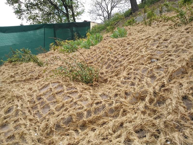 Die Kokosnetze lassen ich mit Unkrautvlies oder mit Ökotextilien aus Biomassen kombinieren und dadurch verhindern sie das Wachstum von Unkraut an mit Sträuchern oder Stauden bepflanzten Gartenhängen.
