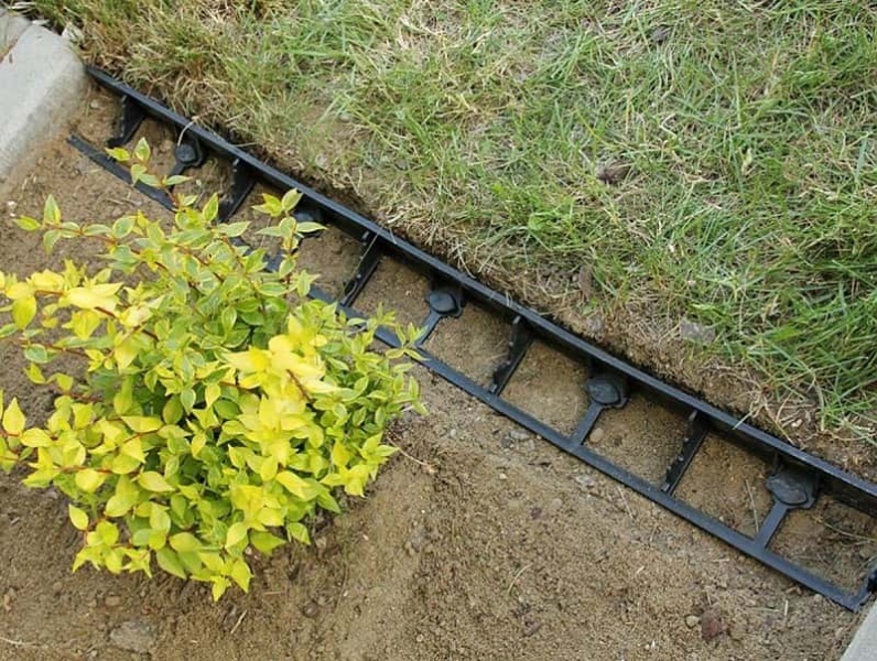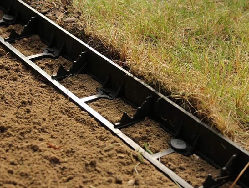 Zum Trennen von Pflasterungen oder Gehwegen soll die Höhe der Rasenkante mindestens der Pflasterhöhe entsprechen. Die Rasenkanten werden mit 25 cm langen Erdnägeln aus Kunststoff (nicht im Lieferumfang) befestigt. Pro Meter Rasenkante genügt es, 2–3 Erdnägel zu setzen (je nach der Form), bei steilen Kurven sind 5–6 Erdnägel erforderlich.