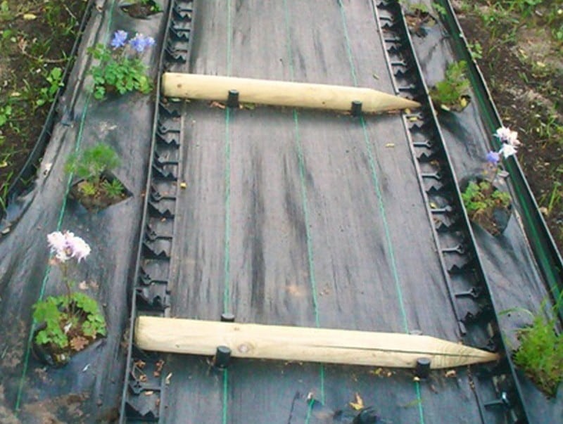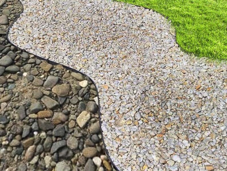 Zum Trennen von Pflasterungen oder Gehwegen soll die Höhe der Rasenkante mindestens der Pflasterhöhe entsprechen. Die Rasenkanten werden mit 25 cm langen Erdnägeln aus Kunststoff (nicht im Lieferumfang) befestigt. Pro Meter Rasenkante genügt es, 2–3 Erdnägel zu setzen (je nach der Form), bei steilen Kurven sind 5–6 Erdnägel erforderlich.
