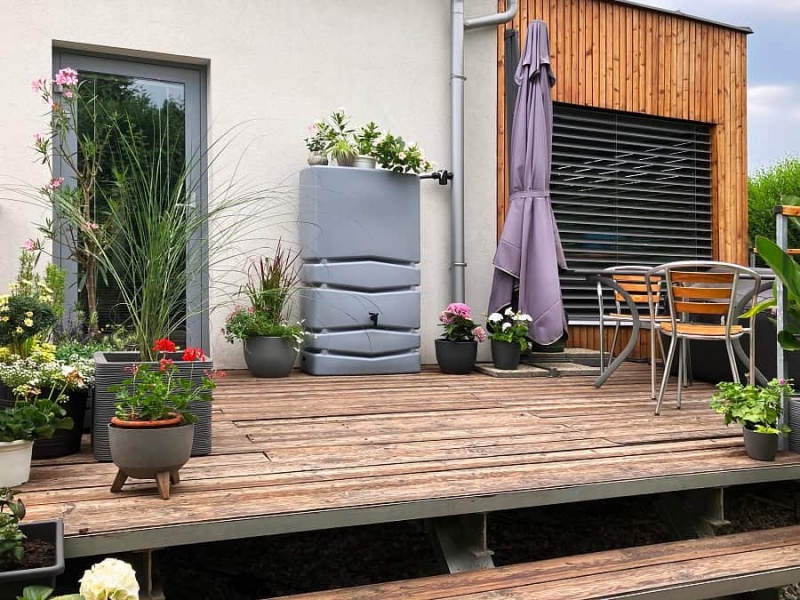 Die eckigen Regentonnen sind in Farbausführungen Anthrazit oder Grau erhältlich und runden Ihre Gartengestaltung optimal ab.