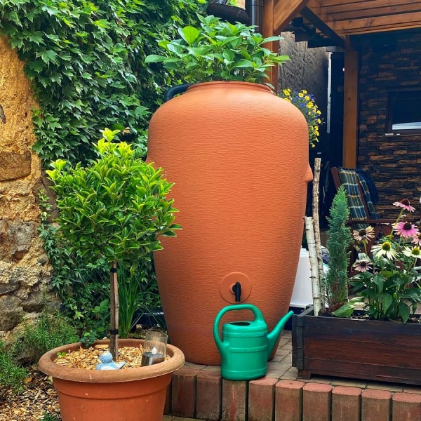 Bei der Herstellung der Kunststofftonnen Aquacan ließen sich die Designer von der altgriechischen Kultur inspirieren. Die Regenwassertonne ist in Amphorenform gestaltet und wird zum richtigen Zierstück Ihrer Außenräume.