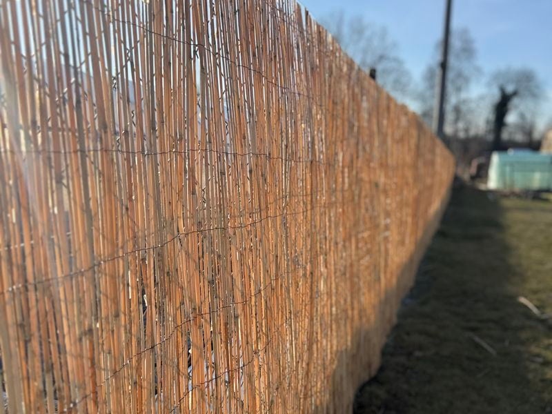 Die Schilfmatte eignet sich auch als Zaunverkleidung, es reicht nur, die Matte mit einem festen Bindedraht am bereits vorhandenen Zaun zu befestigen. Bei Bedarf lässt sich die Matte zurechtschneiden. Anschließend sind die Halme wieder mit Bindedraht zu verbinden, damit die Matte nicht auseinander fällt.