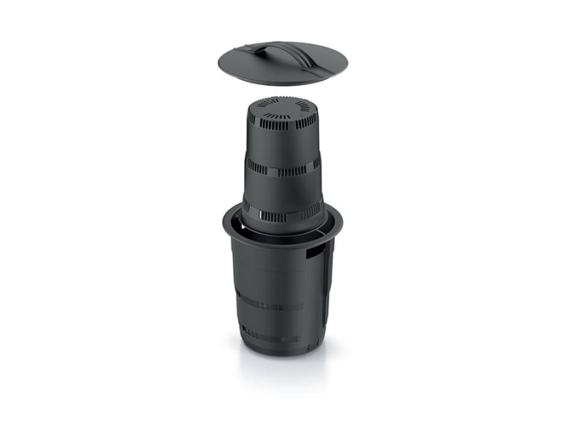 Der kleine Komposter ist zum Versenken im Boden bestimmt. Der Durchmesser dieser Komposter-Baureihe beträgt 25 cm. Mit den minimalistischen Abmessungen lässt sich der Gartenkomposter direkt in bepflanzten Beeten vergraben.