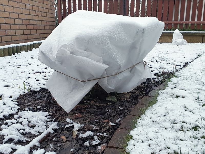 Das Verlegen des weißen Vlieses ist sehr einfach. Alles was Sie tun müssen, ist es auf der Erdoberfläche zu verlegen und an den Seiten mit Erdankern zu befestigen. Wenn Sie eine größere Fläche abdecken müssen, kaufen Sie mehrere kleinere Rollen und legen Sie die Gartenvliese übereinander. Minimale Überlappung: 20 cm. Zum Schutz von Baumkronen umwickeln Sie diese mit dem Wintervlies und umbinden Sie sie mit einer Schnur.