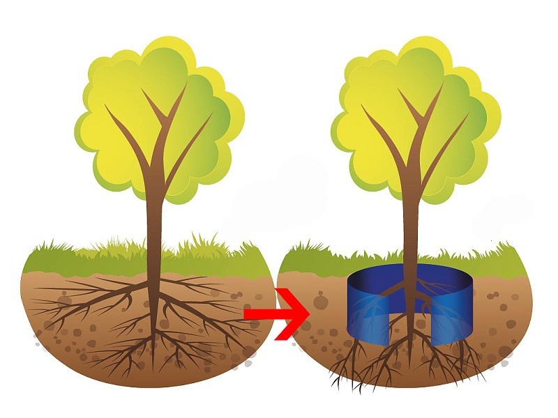 Am besten und effektivsten ist der kreisförmige Einbau der Rhizomsperre, bei dem die Membrane um einen Baum herum aufgestellt wird. Die Rhizomsperre darf aber nicht zu nah an der Pflanze angelegt werden, denn zu wenig Raum für das Wurzelwachstum führt zu Stabilitätsverlust.