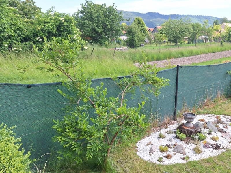 Der Zaunsichtschutz besteht aus hochverdichtetem Polyethylen (HDPE). Dank der Materialwahl ist das Schattiernetz langlebig und UV-beständig.